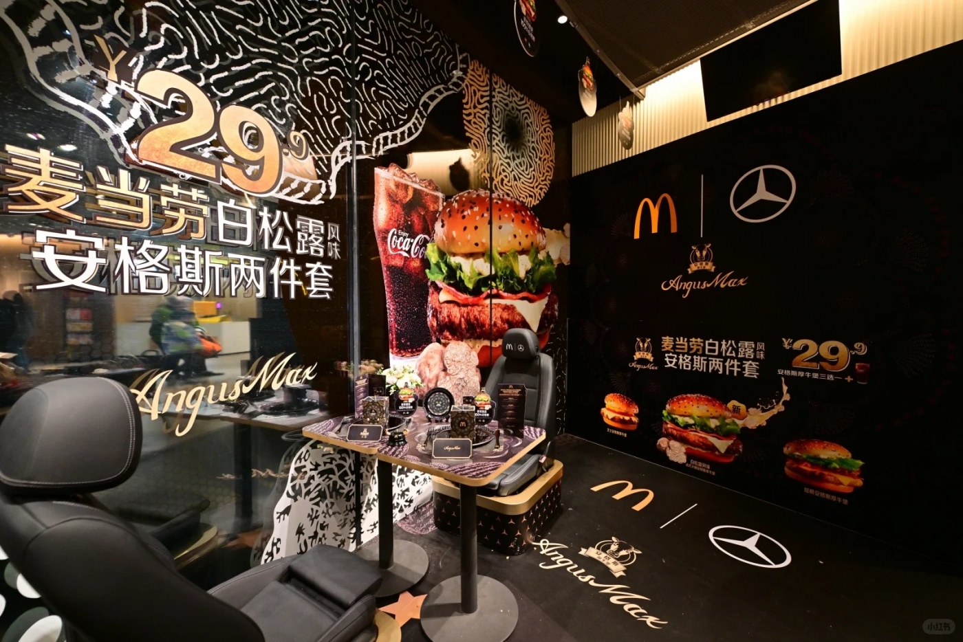 지난 10월, 중국 맥도날드가 메르세데스-벤츠와 손을 잡았습니다. 베이징, 상하이 등 6개 도시의 주요 매장은 검은색과 금색을 활용한 '블랙골드' 테마의 플래그십 스토어로 변신했습니다. 맥도날드 로고가 새겨진 벤츠 차량이 전시되었고, 소비자들은 한정판 '백송로 풍미 프렌치 햄 앵거스 버거'를 맛보며 특별한 공간을 경험했습니다.