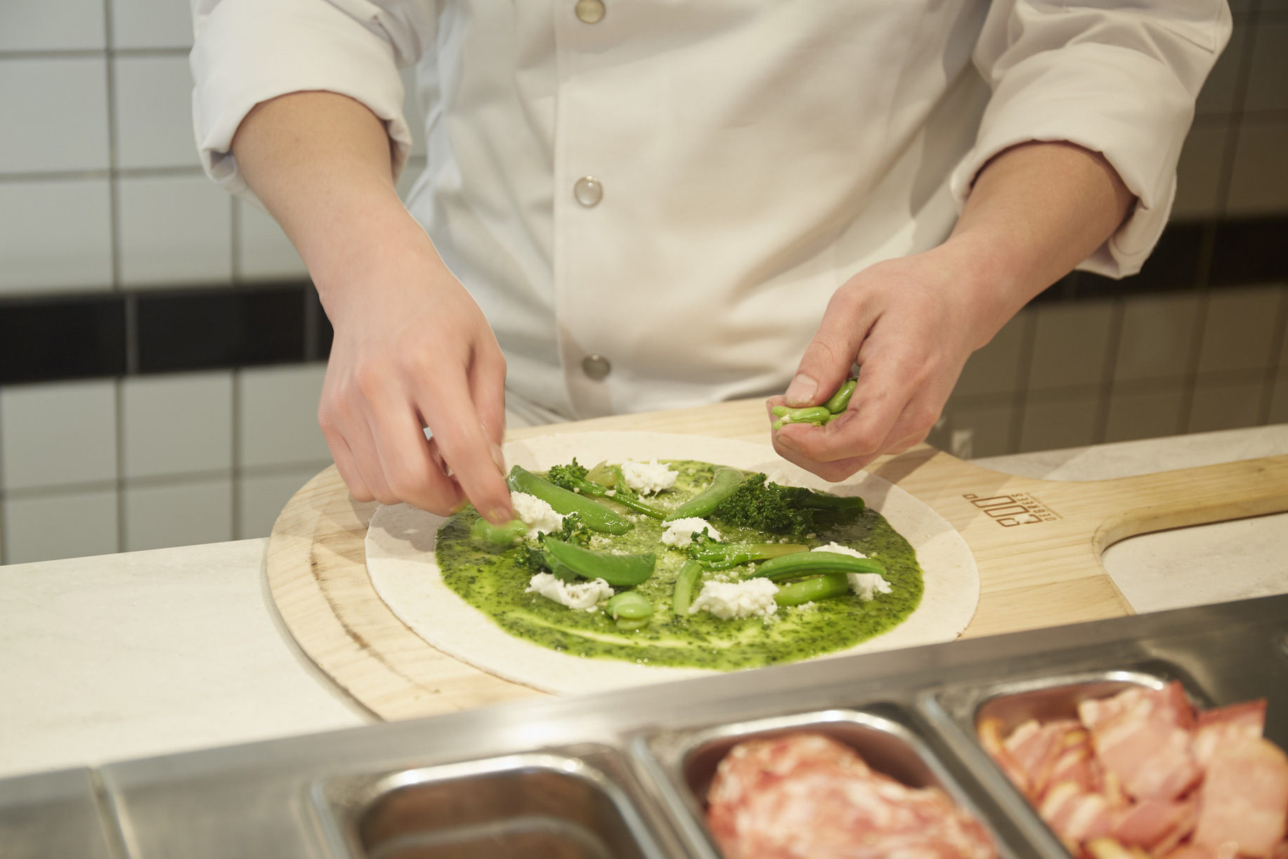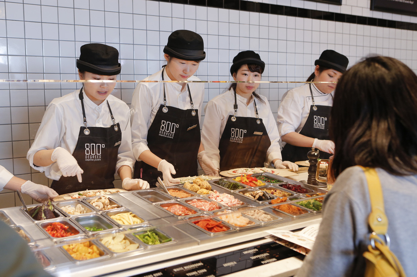 매장에 들어선 고객은 컨베이어 벨트를 따라 이동하며 마치 오케스트라의 지휘자처럼 자신만의 피자를 창조합니다.