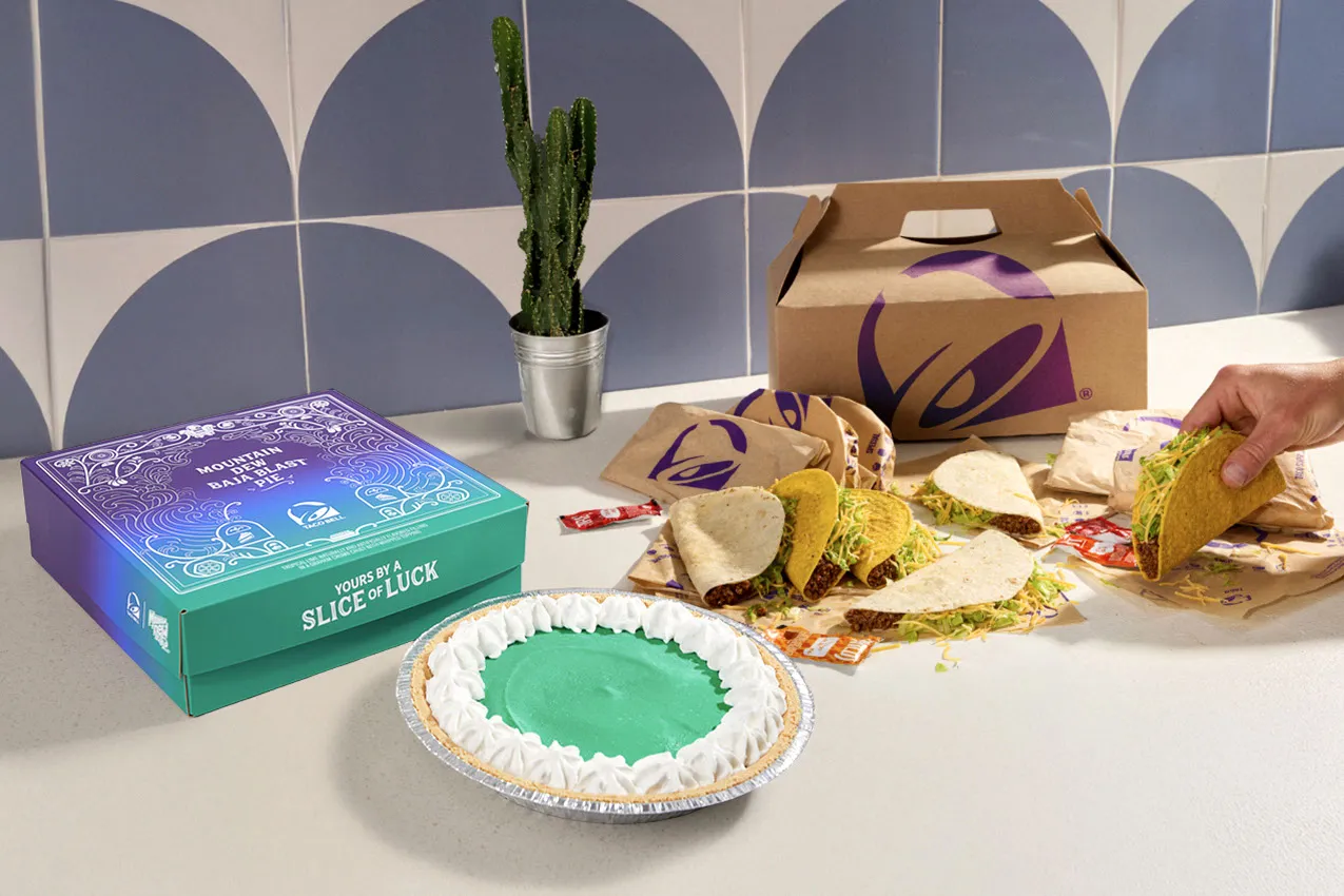 이미 강력한 팬덤을 보유한 브랜드라면, 그들의 시각적 자산을 새로운 형태로 재창조하는 전략이 유효합니다. 최근 타코벨(Taco Bell)은 자사의 상징적인 음료 ‘마운틴듀 바하 블라스트’를 파이로 출시하며 시장에 신선한 충격을 주었습니다.