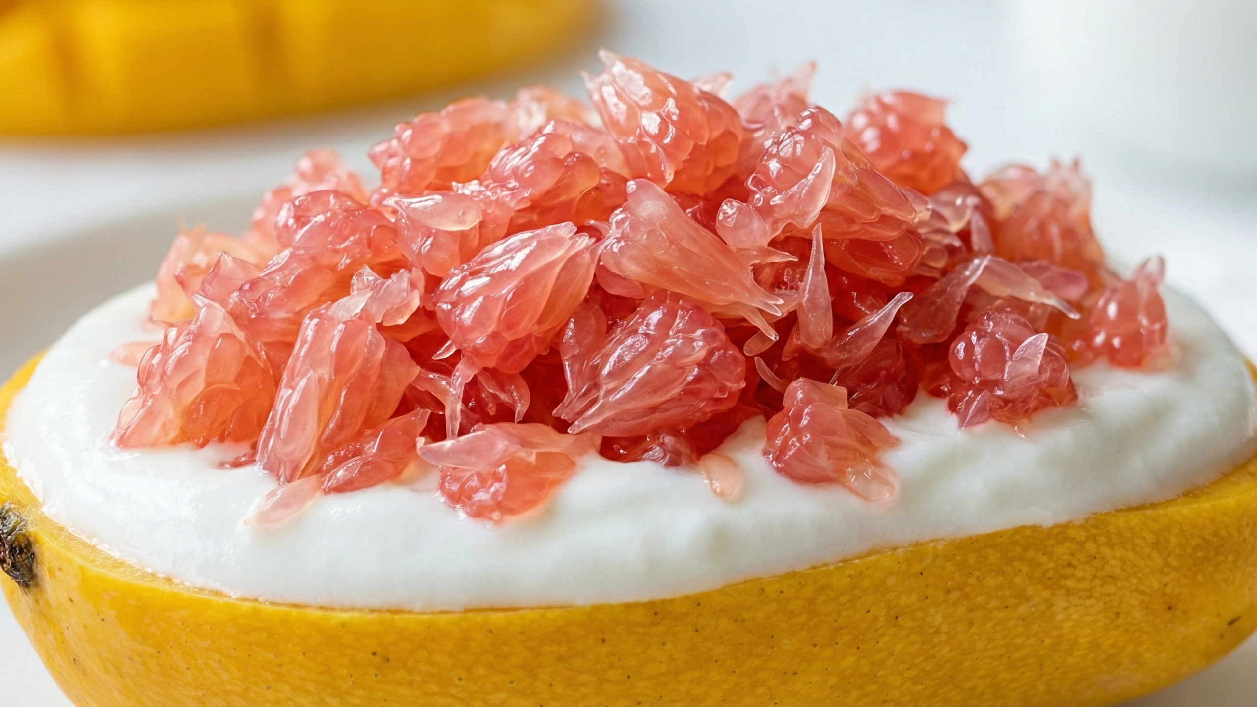 특히 최근에는 망고 반쪽 위에 꾸덕한 질감의 요거트와 자몽 알갱이를 올려내는 방식이 소셜 미디어를 중심으로 폭발적인 반응을 얻고 있다. 이 직관적인 비주얼은 온라인을 지배했다. 중국판 인스타그램 샤오홍슈에서 관련 해시태그 조회 수는 1억 2천만 회를 넘겼고, 틱톡의 더우인에서는 약 10억 회에 육박하는 조회 수를 기록했다.