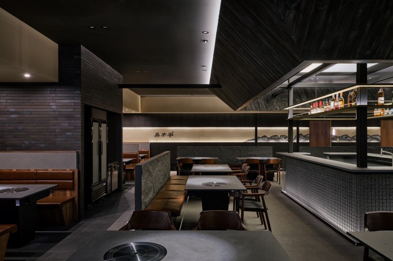 흑우정의 가장 큰 특징은 홀 전체가 바닥에서 떠 있는 '플로팅 플로어' 구조라는 점이다. 이는 하향식 덕트를 설치하기 위한 기능적 선택인 동시에 고객이 매장에 들어서며 단을 올라갈 때 느끼는 설렘과 특별한 공간감을 극대화하기 위한 설계다.