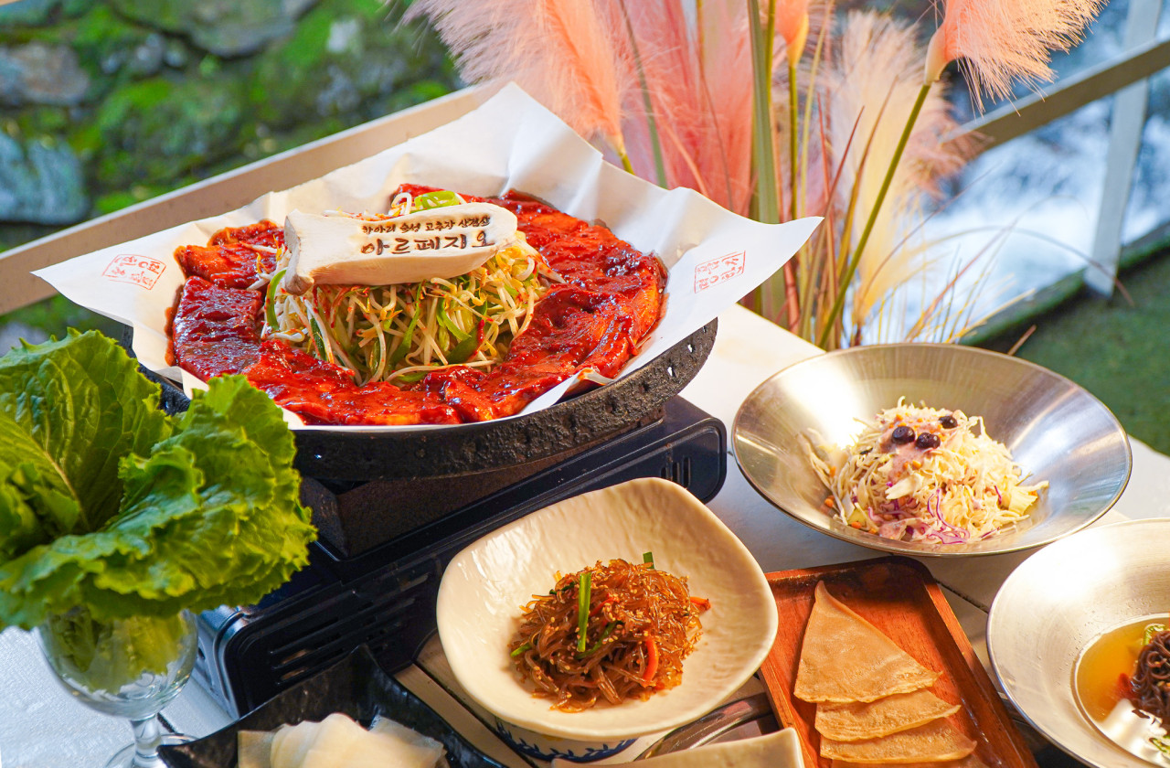 메뉴를 즐기는 방식 또한 독창적입니다. 아르페지오는 고기를 구울 때 불판 위에 전통 한지를 깝니다. 한지가 삼겹살에서 나오는 기름을 흡수하여 고기가 타는 것을 방지하고, 기름기를 쏙 빼주어 마지막까지 담백한 고기를 즐길 수 있게 돕습니다. 또한, 잘 구워진 치즈 삼겹살과 아삭한 숙주를 얇게 부친 도토리전에 싸 먹는 방식을 도입했습니다. 전국 어디에서도 찾아볼 수 없는 이 고유한 식사 방식은 아르페지오만의 대체 불가한 정체성이 되었습니다.