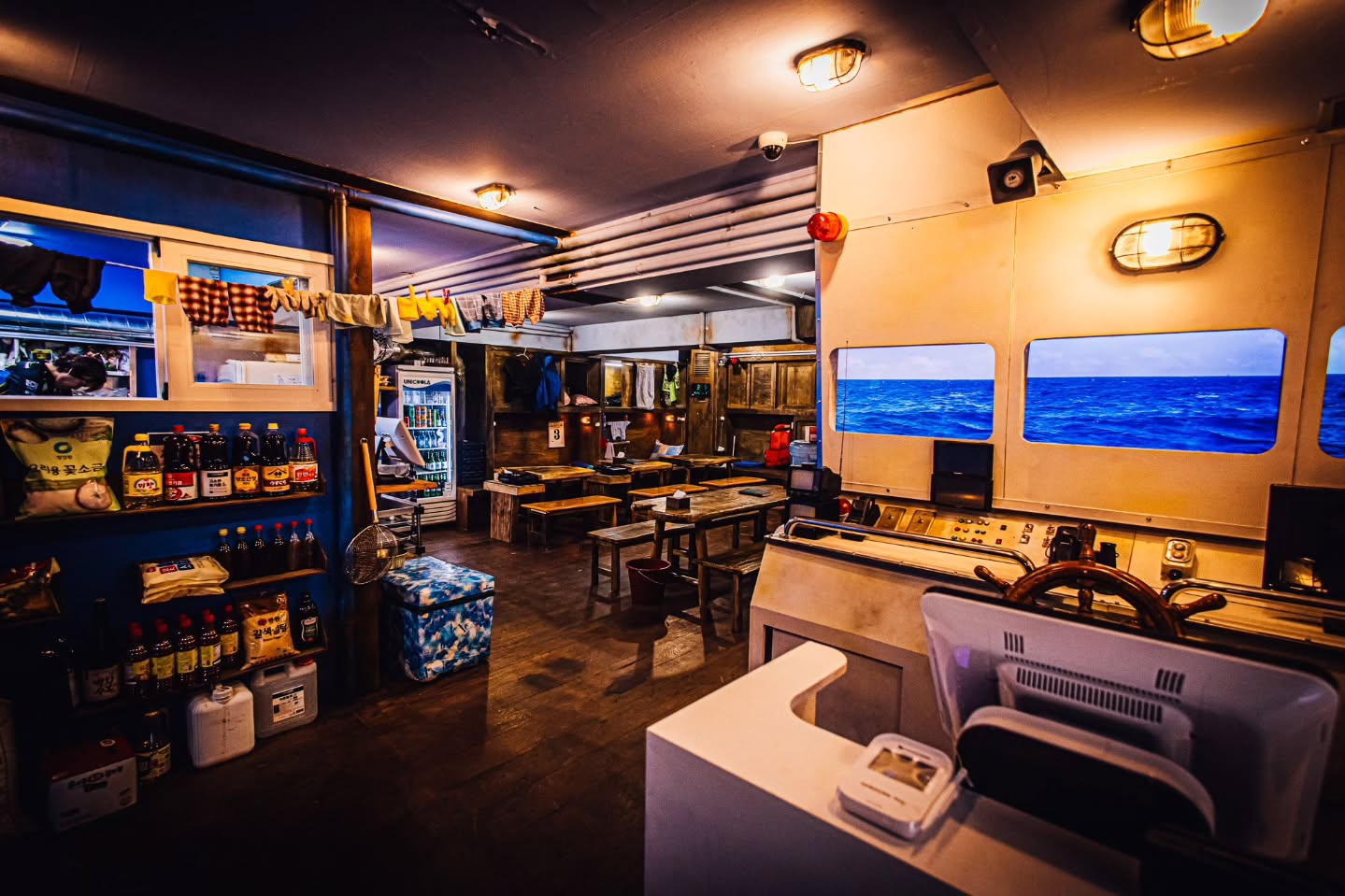 정돈되지 않은 듯한 거친 느낌은 오히려 '선상'이라는 컨셉을 더욱 리얼하게 만든다. 고객들은 자리에 앉기도 전에 이 독특한 분위기에 압도되어 사진부터 찍기 시작하며 이는 자연스럽게 SNS를 통한 오픈런으로 이어진다.