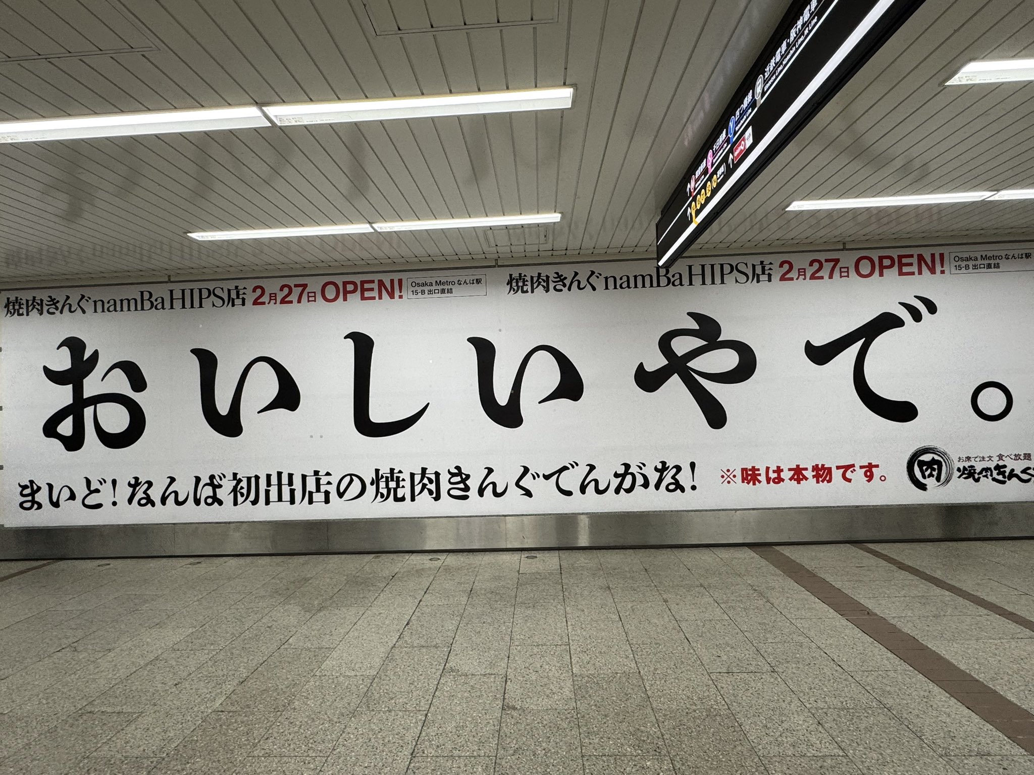 4,000장의 고기가 모두 사라진 자리에는 투박한 오사카 방언으로 '오이시이야테(おいしいやて, 맛있당께)'라는 메시지가 모습을 드러낸다. 이는 단순히 맛을 강조하는 카피를 넘어, 지역민의 정서에 깊숙이 침투하려는 고도의 하이퍼 로컬(Hyper-local, 지역 밀착) 전략이다. 외식업의 격전지인 난바에서 외지 브랜드가 가질 수 있는 이질감을 유머러스한 장치로 해소한 것이다.