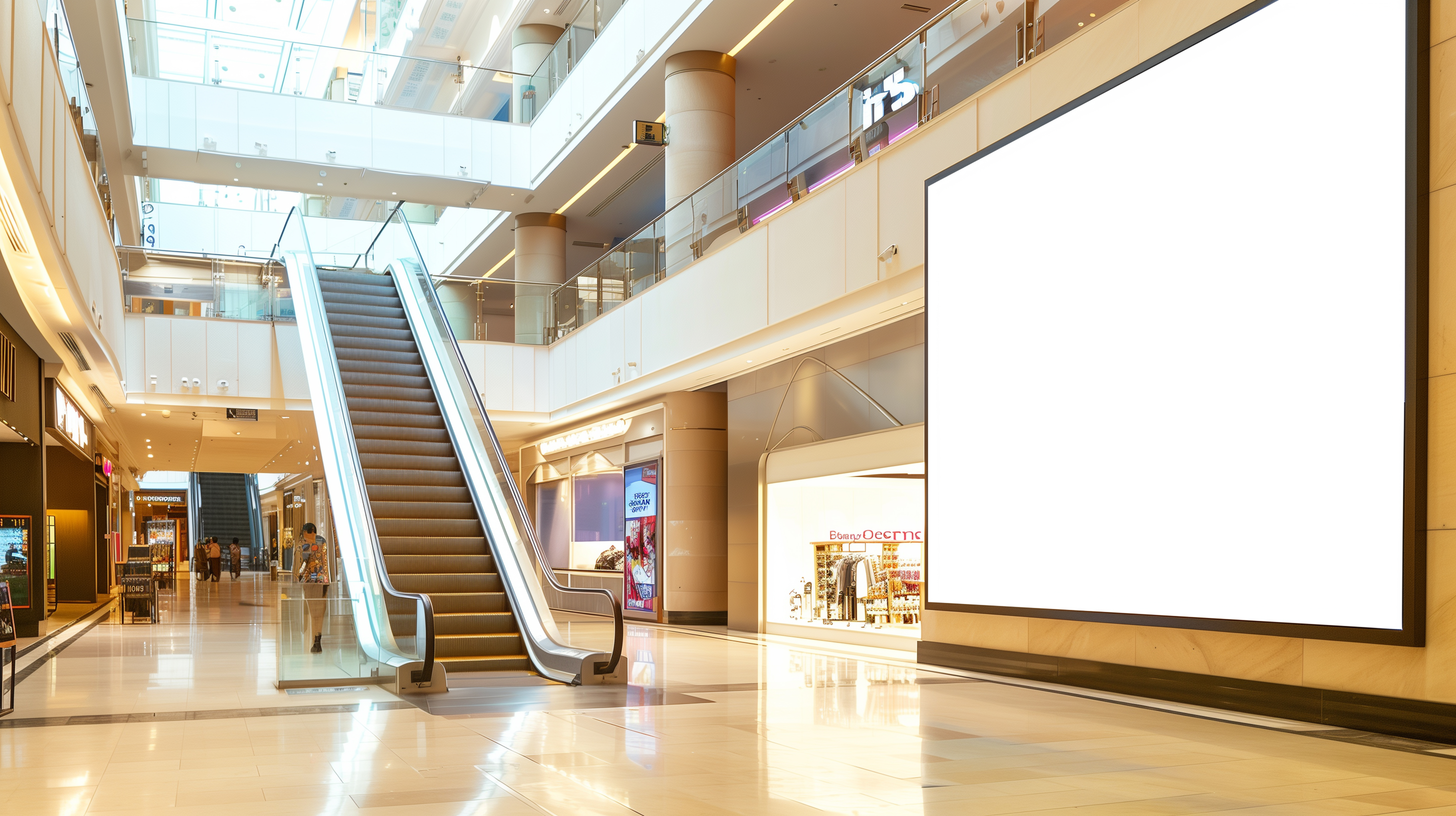 백화점 에스컬레이터 옆 TV 월, 복도 입간판, 층별 안내 모니터와 같은 POP(구매 거점 광고·Point of Purchase) 공간이다. 차이리핑은 입점 후 백화점 담당자에게 무상으로 활용할 수 있는 노출 자리가 있는지 꾸준히 확인했다. 많은 브랜드가 이 지면을 활용하지 않아 빈 자리가 생긴다는 점을 파악했다.